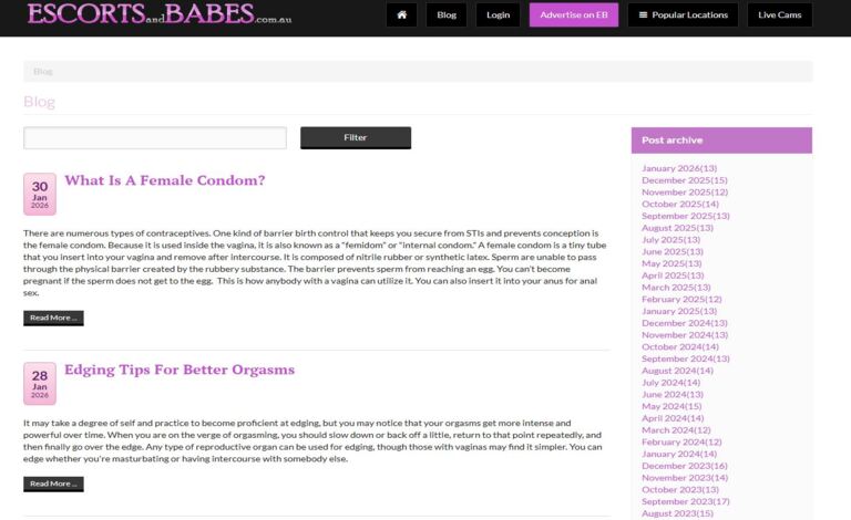 Today, I will talk about an Australian website called Escortsandbabes.com.au. It has a list of sex workers and a blog full of helpful advice.